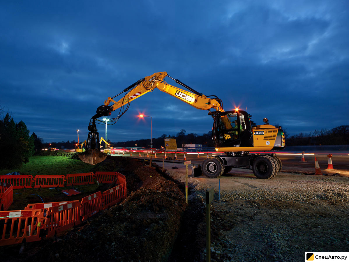Колесный экскаватор JCB JS 175W, оформленный в аренду, справится с такими задачами,