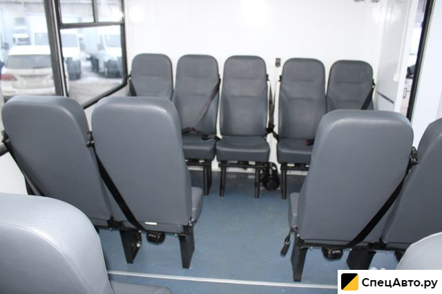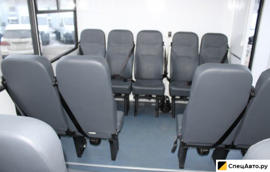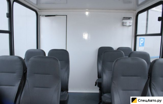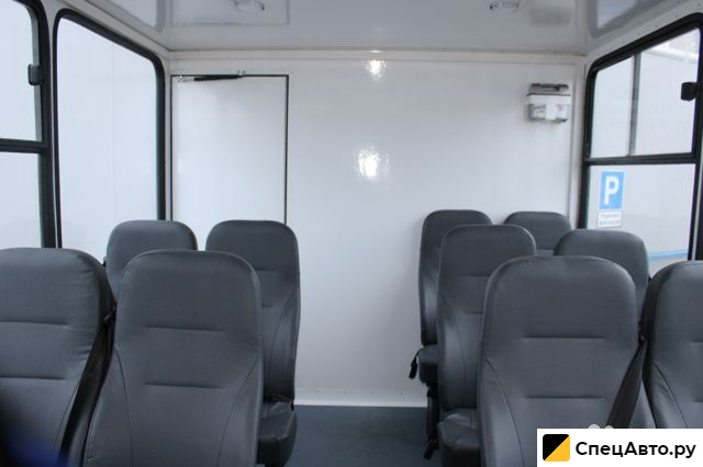 Доступ в фургон осуществляется через боковую одностворчатую дверь с заниженным входом. Каждый фургон «ВАХТА» оснащен запасными выходами через одинарную дверь, расположенную сбоку, и молотками для разбития окон в качестве аварийного выхода. Слева и справа установлены 2 глухих и 3 сдвижных окна. На каждой двери установлены индикаторы открытой двери. Тепло внутри салона обеспечивается автономным воздушным отопителем «Планар». Для связи с водителем в фургоне установлен зуммер. Вахта способна вместить до 20 пассажиров, которые размещаются на удобных сиденьях в фургоне, а один человек перевозится в кабине рядом с водителем. Сидения соответствуют стандартам безопасности и оборудованы трехточечными ремнями. По желанию заказчика возможна установка столика.
