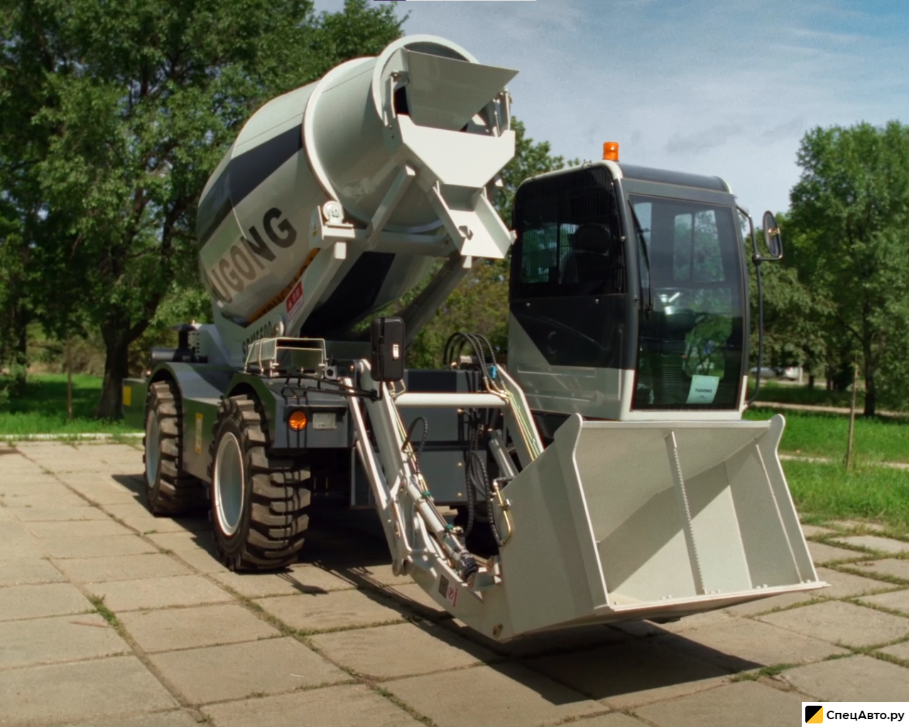 Самозагружающий самоходный бетоносмеситель YUGONG SDM5500 — это универсальная мобильная машина, сочетающая в себе функции фронтального погрузчика, смесителя и автобетоносмесителя. Она позволяет загружать компоненты, замешивать бетон и доставлять его непосредственно к месту укладки без привлечения дополнительной техники.